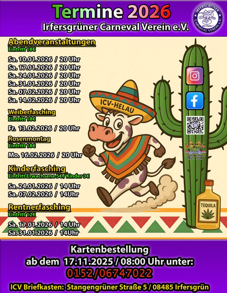 Kinderfasching: 24.01./07.02.2026 / 14:00 Uhr / Eintritt 5€ Erw. ; 3€ Kind